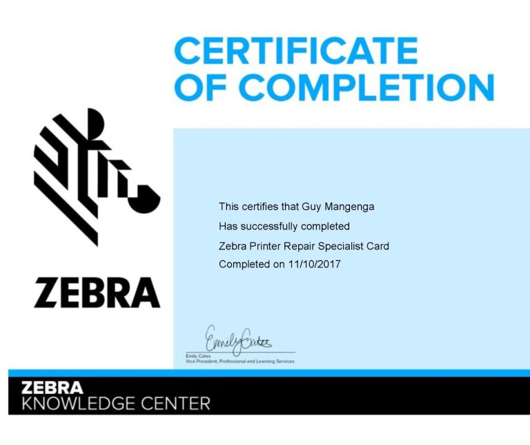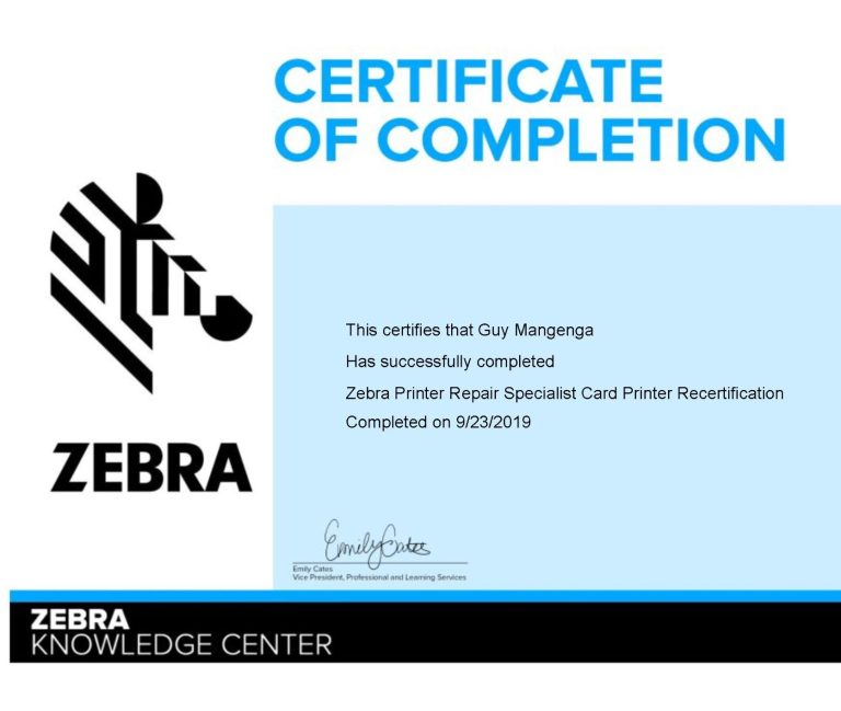 Zebra Printer Repair Specialist Card Printer Recertification (2019)